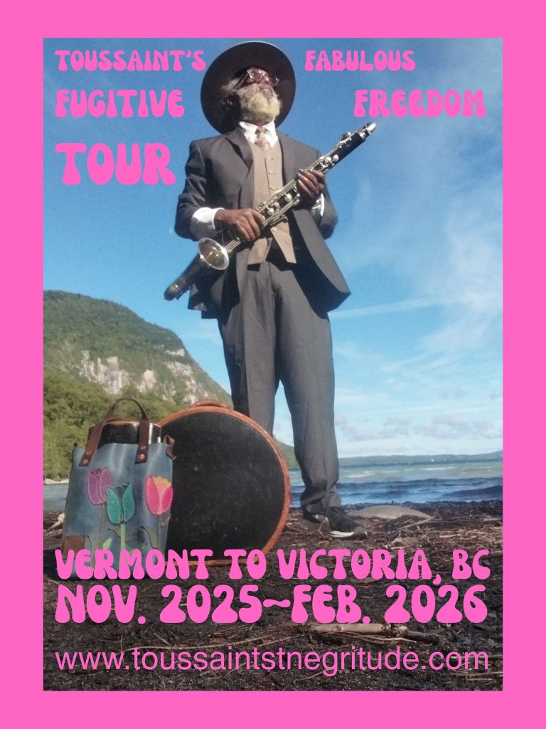 Now that the expressing of so many of our freedoms is rapidly becoming a fugitive aspect of our humanity, I am deeply called to broadly voice the intrinsic magnitude of our omnipotent fabulousness! Composed specially for this tour, I will be premiering The Fabulous Fugitive Freedom Suite, a fiery incantation of multi-reed compositions on clarinet, along with a full conjuring of liberties from my recent collection of poems, Mountain Spells {Rootstock Publishing, 2024}.